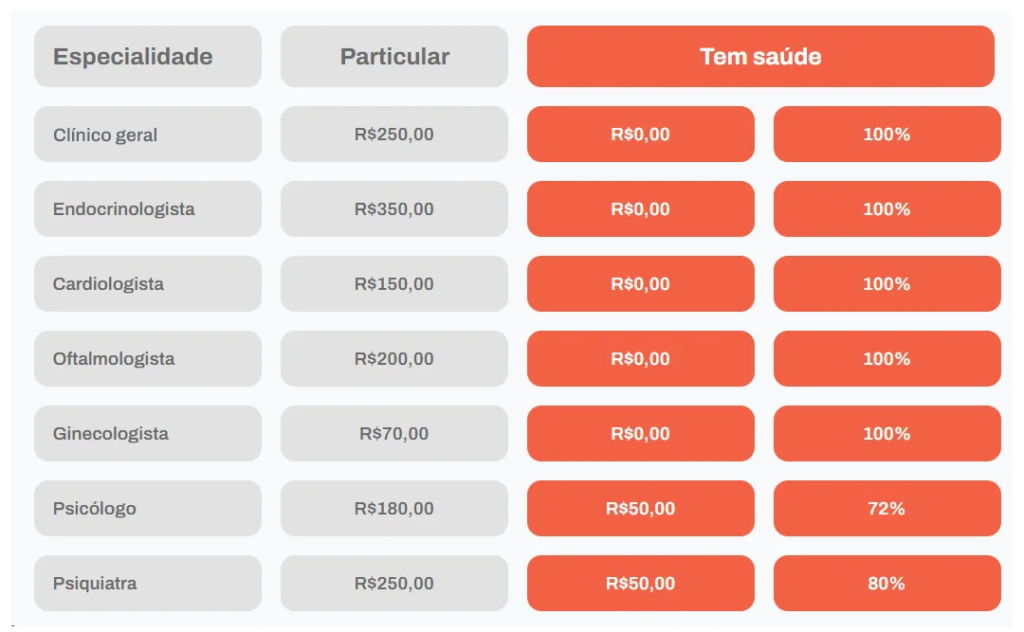 * A economia foi calculada com base nos valores médios praticados em cada parceiro, os valores da Tem Saúde são referenciais e foram apurados em pesquisa realizada na rede credenciada.